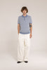 This zipped polo is crafted from 100% cotton and knitted in a 12GG vanisé structure, creating subtle depth and a naturally really thin vertical stripes. The hand is soft yet compact, breathable and comfortable, designed to sit cleanly on the body.